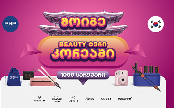 - PSP-ში K-Beauty გათამაშებაში 1000 პრიზთან ერთად შეგიძლიათ მოიგოთ სამოგზაურო ტური სამხრეთ კორეაში!