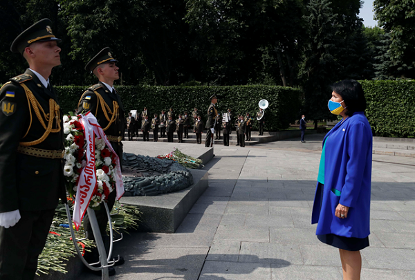 პრეზიდენტმა უკრაინის თავისუფლებისა და დამოუკიდებლობისათვის მებრძოლ გმირთა მემორიალები გვირგვინით შეამკო
