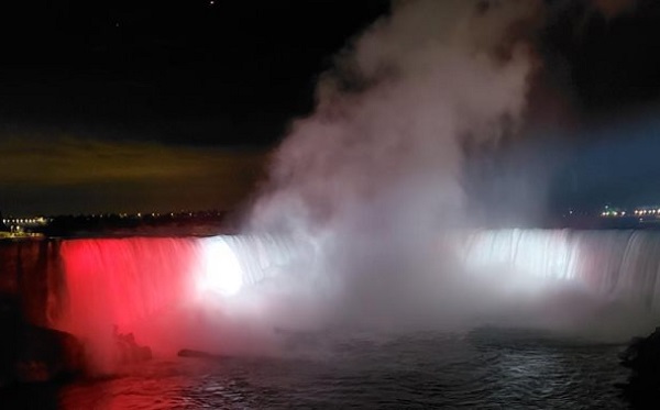 კანადაში ნიაგარის ჩანჩქერი საქართველოს დროშის ფერებში განათდა | ვიდეო