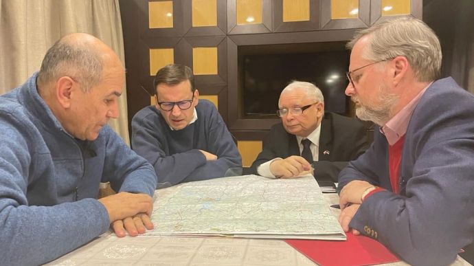 პოლონეთის პრემიერ-მინისტრმა მათეუშ მორავეცკიმ განაცხადა, რომ ჩეხეთისა და სლოვენიის პრემიერებთან ერთად უკვე კიევში იმყოფება.
