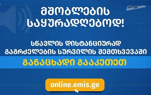 მოსწავლეების მშობლებს ონლაინ სწავლებაზე რეგისტრაციის შესაძლებლობა ექნებათ