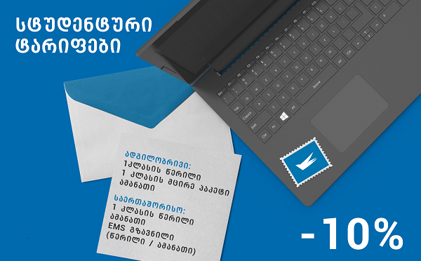 2021 წლის 20 სექტემბრიდან "საქართველოს ფოსტამ" სტუდენტებს შესთავაზა სტუდენტური, შეღავათიანი ტარიფი შემდეგი პროდუქტების/გზავნილების გაგზავნაზე: სტუდენტური ტარიფი -10% ადგილობრივი:• &nbs... -