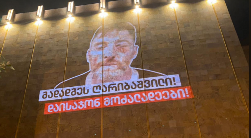 გადადგეს ღარიბაშვილი! დაისაჯონ მოძალადეები! - მოძრაობა "დროამ" მთავრობის ადმინისტრაციასთან აქცია-პერფორმანსი გამართა და გარდაცვლილი ოპერატორის ლექსო ლაშქარავას ფოტო, წარწერით - "გადადგეს ღარიბაშვილი! ... -