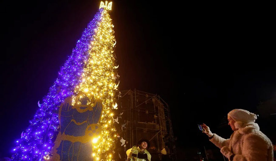 კიევში, სოფიას მოედანზე ნაძვის ხე აინთო
