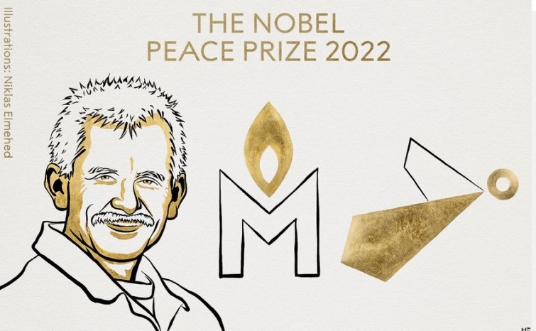 ნობელის პრემია მშვიდობის დარგში ბელარუსული უფლებადამცველი ორგანიზაციის "ვესნას" დამფუძნებელს ალეს ბიალიატსკის, რუსეთის ადამიანის უფლებათა ცენტრ "მემორიალს" (ხელისუფლების მიერ აღიარებულია უცხოელ აგენტა...