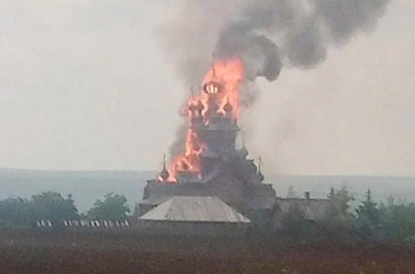 დონეცკის ოლქში, დაბომბვის შედეგად სვიატიგორსკის ლავრას ცეცხლი გაუჩნდა