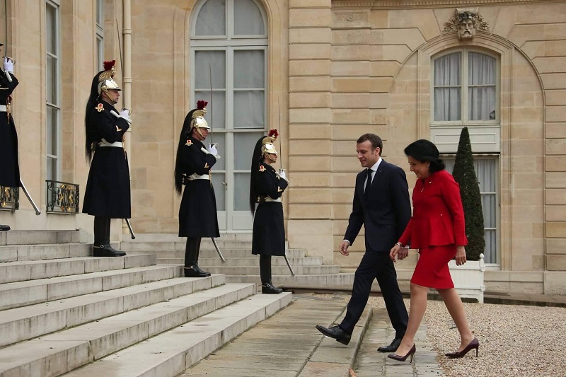სალომე ზურაბიშვილი ემანუელ მაკრონს ელისეის სასახლეში ხვდება