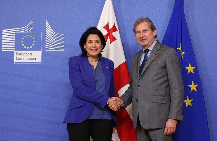 სალომე ზურაბიშვილი ევროკომისარ იოჰანეს ჰანს შეხვდა