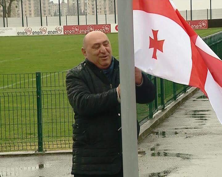 ქუთაისის რაგბის სტადიონზე, საქართველოს დროშა გოგი წულაიამ აღმართა
