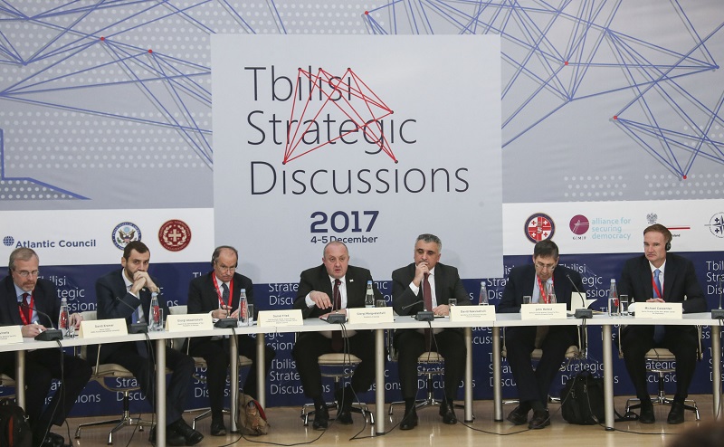 "თბილისის სტრატეგიული დისკუსიის" დასკვნითი კონფერენცია გახსნა დღეს საქართველოს პრეზიდენტმა გიორგი მარგველაშვილმა პრეზიდენტის სასახლეში, რომელსაც უშიშროების საბჭოს მდივანი დავით რაქვიაშვილი უძღვებოდა დ... -