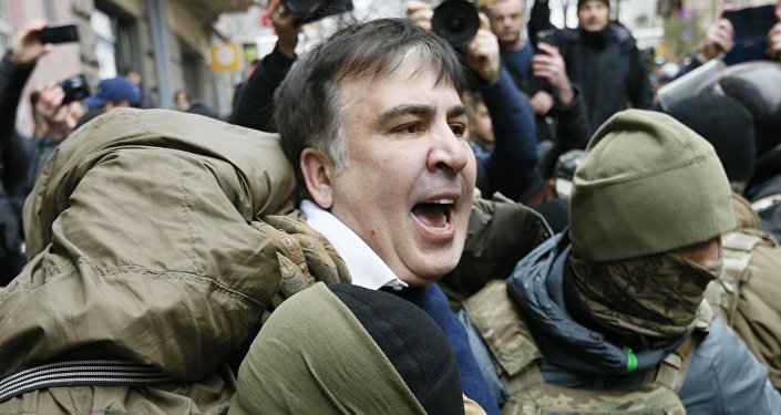 დაჭერილი სააკაშვილი მიკროავტობუსიდან მხარდამჭერებმა გამოიყვანეს