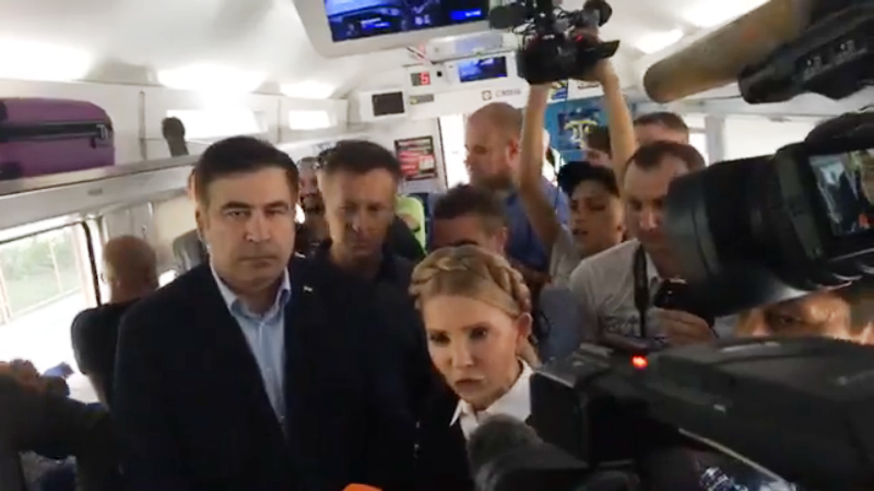 სააკაშვილი და მისი მხარდამჭერები მატარებლით, რამდენიმე წუთში უკრაინაში გაემგზავრება