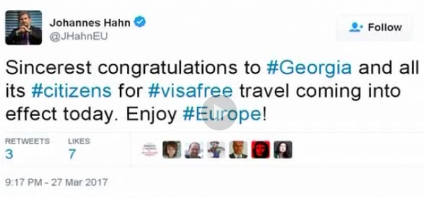 საქართველოს ევროკავშირთან უვიზო მიმოსვლას ულოცავს, ევროკომისარი ევროპის სამეზობლო პოლიტიკისა და გაფართოების საკითხებში იოჰანეს ჰანი.
