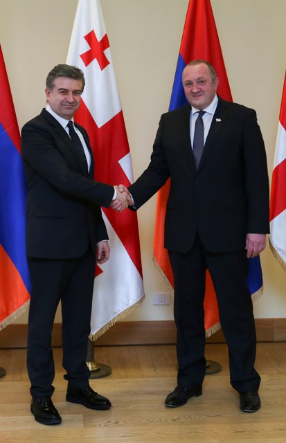საქართველოს პრეზიდენტი გიორგი მარგველაშვილი თბილისში ორდღიანი ოფიციალური ვიზიტით მყოფ სომხეთის რესპუბლიკის პრემიერმინისტრ კარენ კარაპეტიანს და სომხეთის დელეგაციასშეხვდა.