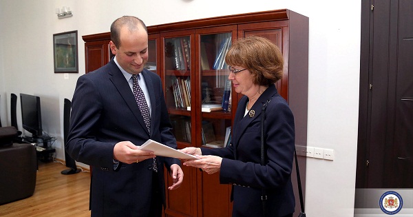 საქართველოს საგარეო საქმეთა მინისტრს მიხეილ ჯანელიძეს რწმუნებათა სიგელის ასლი გადასცა გერმანიის ფედერაციული რესპუბლიკის ახლადდანიშნულმა ელჩმა ჰაიკე რენატე პაიჩმა. სიგელის ასლის გადაცემის ცერემო...