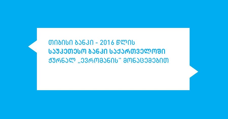 ავტორიტეტულმა ფინანსურმა ჟურნალმა Euromoney Magazine თიბისი ბანკი 2016 წლის საუკეთესო ბანკად დაასახელა საქართველოში. განვლილი 6 წლის მანძილზე, თიბისი ბანკმა უკვე მეხუთედ მოიპოვა საქართვ... -