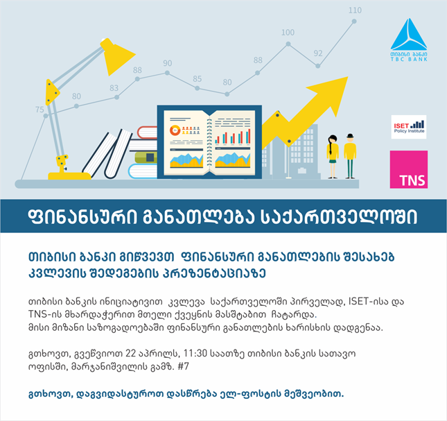 თიბისი ბანკის სათაო ოფისში ფინანსური განათლების შესახებ კვლევის შედეგების პრეზენტაცია გაიმართება
