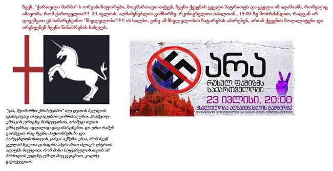 აქციას - "არა რუსულ ფაშიზმს საქართველოში" ,,ქართველთა მარში“ მორიგი აქციით უპირისპირდება