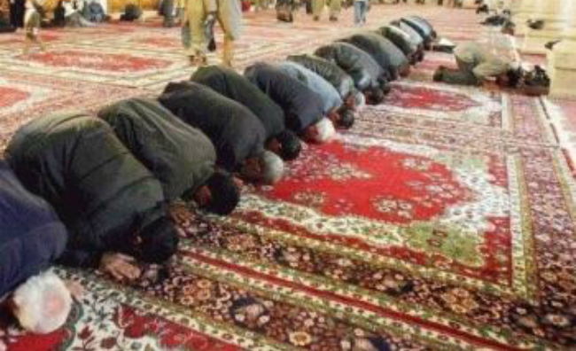 სოფელ მოხეში მუსლიმი თემი სადავო შენობის ეზოში ლოცულობს