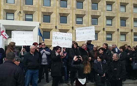 ხანძრის შედეგად დაზარალებული მოვაჭრეები კანცელარიასთან საპროტესტო აქციას მართავენ