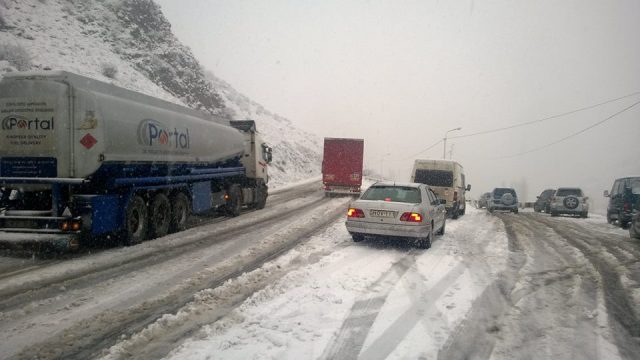 ახალქალაქი-კარწახის გზაზე მისაბმელიანი ტრანსპორტის მოძრაობა მოცურების საწინააღმდეგო ჯაჭვებითაა დასაშვები