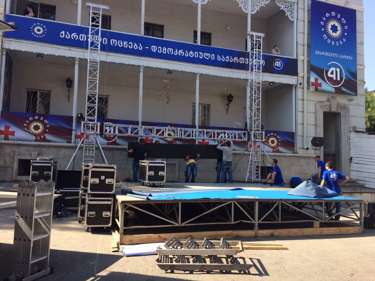 ,,ქართული ოცნების" ოფისთან სცენის დამონტაჟება მიმდინარეობს
