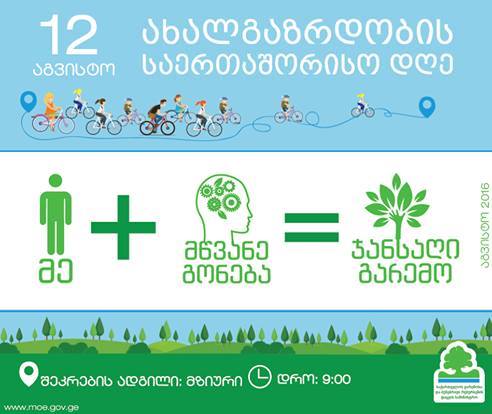 12 აგვისტოს, 930 საათზე, გარემოსა და ბუნებრივი რესურსების დაცვის სამინიტროს ინიციატივით, ახალგაზრდობის საერთაშორისო დღესთან დაკავშირებით, ველო-ტური გამართება, რომელიც სტარტს „მზიურის&ldquo... -