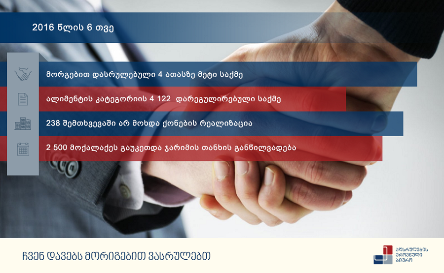 აღსრულების ეროვნული ბიურო 2016 წლის 6 თვის მორიგების მაჩვენებლის სტატისტიკას აქვეყნებს.