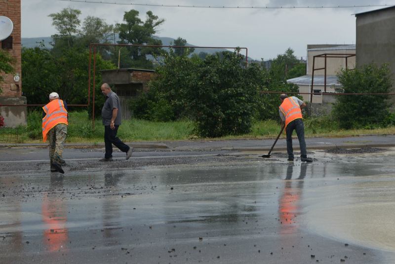 გორში მოსული უხვი ნალექის შედეგად გაწმენდითი სამუშაოები მიმდინარეობს