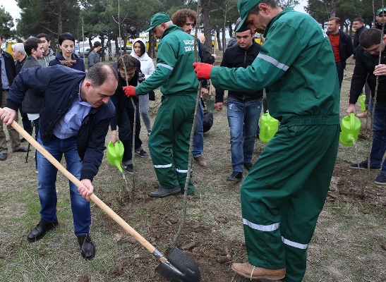 მახათას მთაზე, ქალაქის შემოგარენის გამწვანების ღონისძიებების ფარგლებში, 2000 ფოთლოვანიხე-მცენარედაირგო. გამწვანების აქციაში თბილისის მერი დავით ნარმანია მერიისა და გამგეობების წარმომადგენლებთან ...