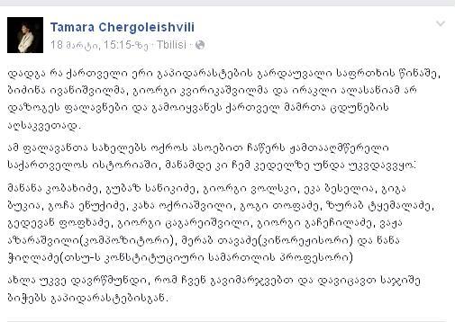 დავრწმუნდი, რომ ჩვენ გავიმარჯვებთ და დავიცავთ საჯიშე ბიჭებს გაპიდარასტებისგან, - თამარ ჩერგოლეიშვილი