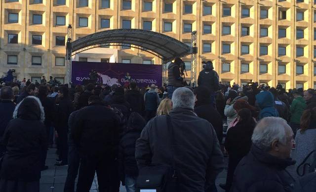 "არა გაზპრომს" - მთავრობის კანცელარიასთან აქცია მიმდინარეობს