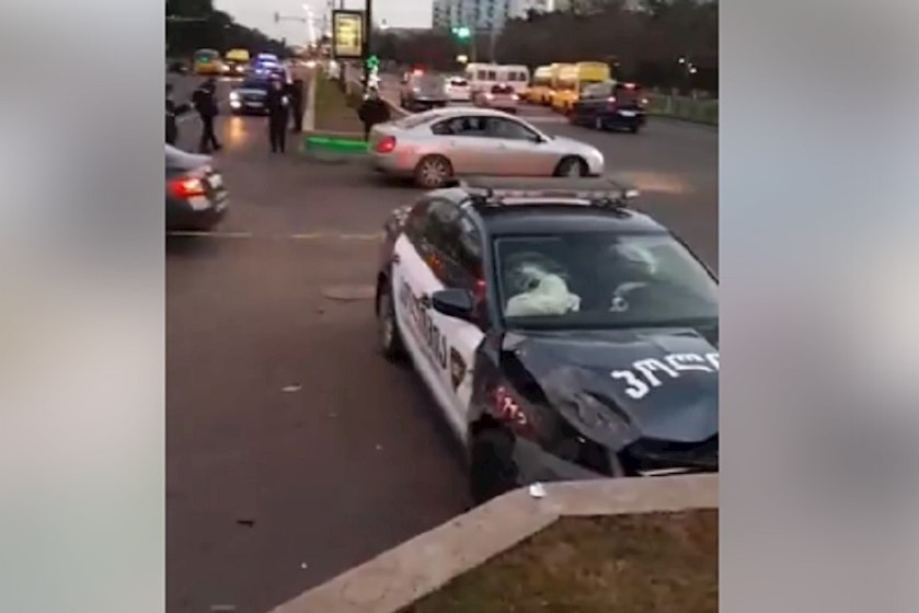 რუსთავში პოლიციის მანაქანა ბორდიურს შეასკდა - დაშავებულია სამართალდამცველი