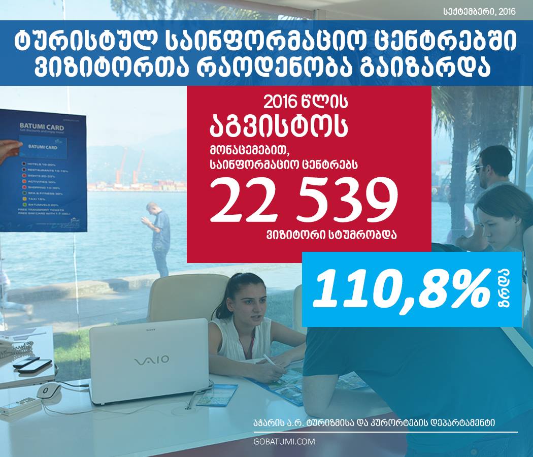 აჭარაში ტურისტულ საინფორმაციო ცენტრებში ვიზიტორთა რაოდენობა 110,8% გაიზარდა