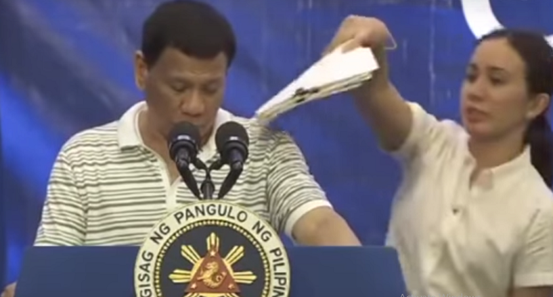 ფილიპინების პრეზიდენტის სიტყვით გამოსვლის დროს მხარზე ტარაკანა ააცოცდა | ვიდეო