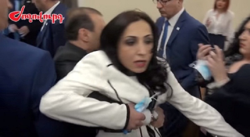 ხმაური ერევნის მერიაში - მმართველი გუნდის წევრებმა ოპოზიციონერ დეპუტატ ქალს სცემეს (ვიდეო)