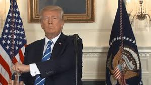 ტრამპმა სიტყვით გამოსვლის დროს წყალი ბოთლიდან დალია (ვიდეო)