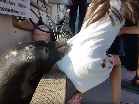ზღვის ლომმა გოგონა წყალში ჩაითრია (ვიდეო)