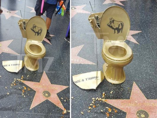 ჰოლივუდის დიდების ხეივანში ტრამპის ვარსკვლავთან ოქროსფრად შეღებელი უნიტაზი დადგეს. თვითმხილვთა თქმით, უნიტაზში რაღაც ”ამაზრზენი” ცურავდა. ამის მიუხედავად, ვანდალიზმის ამ ფაქტზე გამოძ...